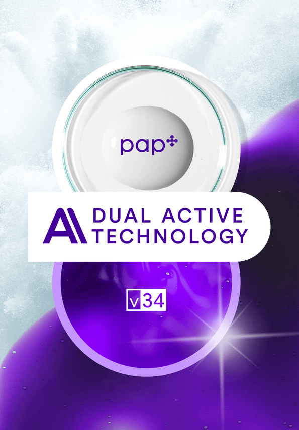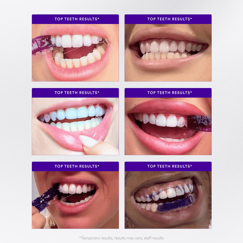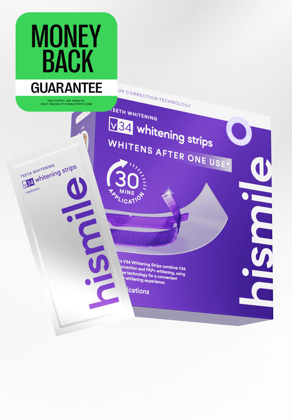 All new V34 & PAP+ technology - No Hydrogen-Peroxide. Whiter teeth in one use. Apply, wait 30-minutes, peel & brush off the purple residue to reveal results.